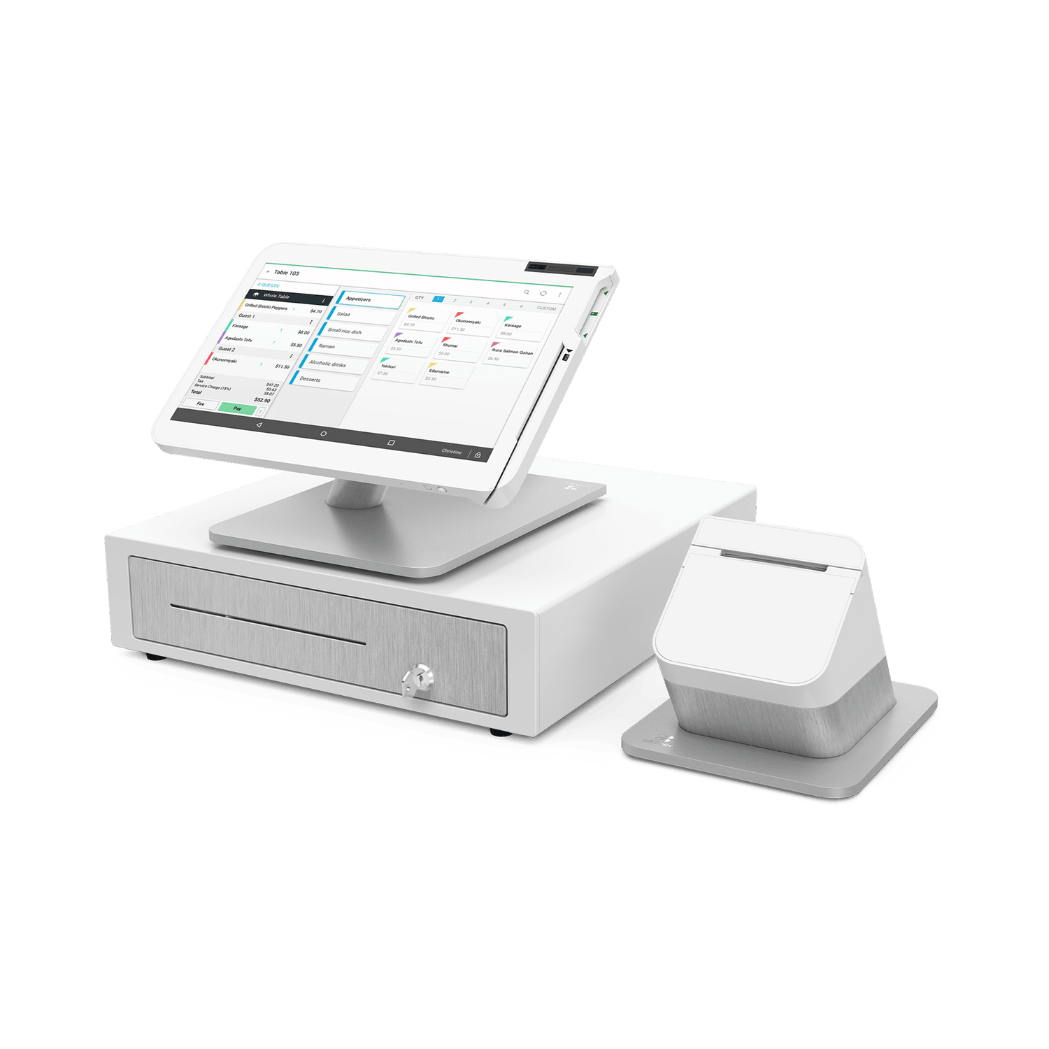 Introducing the Clover POS System: A game-changing all-in-one solution featuring a cash drawer and receipt printer. Prepare to be amazed by its modern and stylish design.